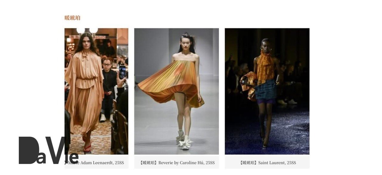 「琥珀色」,介於金色和橙色之間由自然界植物的樹脂而來。取代了夏季樂觀的正橘色,也與長期流行的灰色並列為中性色系。