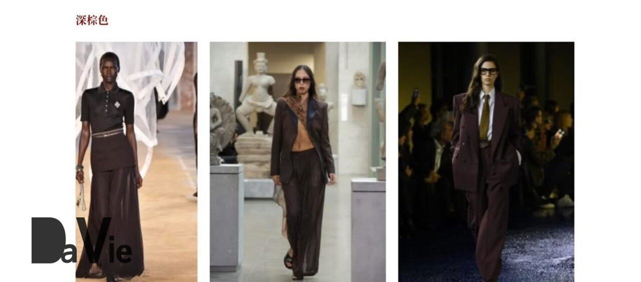 濃郁的深棕色通常出現在秋冬季節,而2025年春夏巴黎時裝週延續秋冬氛圍,將深咖啡色替代黑色,作為本季深色系的主色,應用於正式場合服裝,再度印證重製經典的永恆魅力。